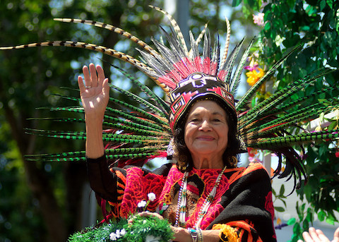 Famed labor leader Dolores Huerta was parade grand marshal at Carnaval in San Francisco in 2016. (“Dolores Huerta” by Tom Hilton / Flickr / CC BY 2.0 license)