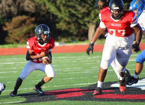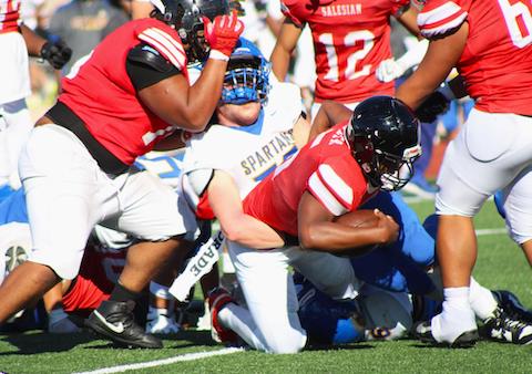 Trying to score before halftime, the Spartans had a fumble returned for a Salesian touchdown by Tarin on the final play of the quarter.