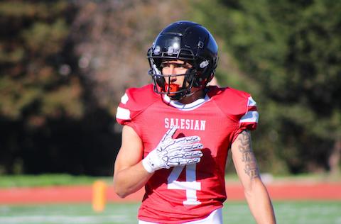 - Salesian senior Jahlil Lindsey, who leads his team in sacks on defense, runs for yards after the catch on the other side of the ball.