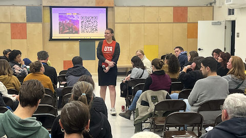 Gabrielle Micheletti, a first grade teacher in West Contra Costa Unified and the vice president of the United Teachers of Richmond, answers questions from parents about a possible strike at a community meeting in Kensington on Nov. 20.