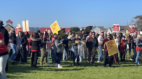 Educators and supporters rallied at Marina Bay Park on Friday during the second day of the United Teachers of Richmond strike. (Juliana Libuano / The CC Pulse)