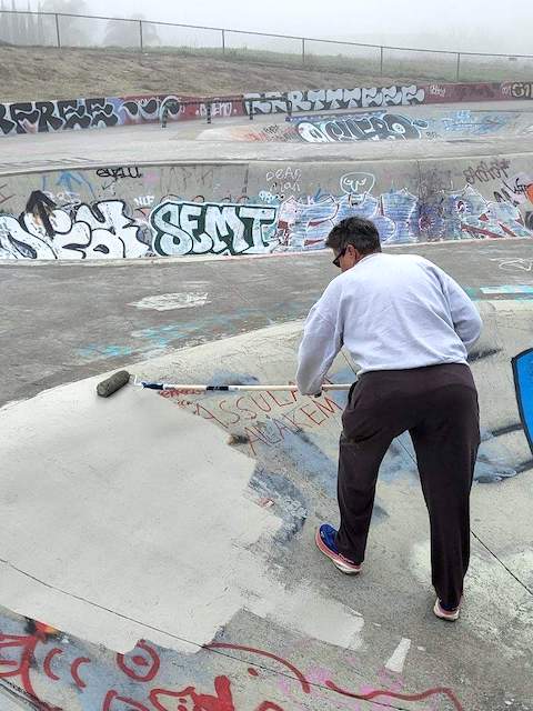 On a chilly, foggy morning Monday, about 40 people from Antioch and the surrounding East County area gathered at the skate park on Lone Tree Way to paint and beautify the space in honor of the Martin Luther King Jr. holiday. The skate park restoration project was one of three Day of Service events held in Antioch.