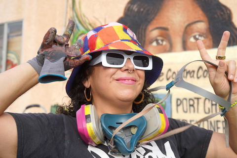 Oakland muralist Vanessa Espinoza, a.k.a. DJ Agana, designed and painted the mural with the support of two additional artists: Joseph Lopez, a.k.a. MERX, and Amaranta Celena Colindres, a.k.a. Curlie Turtle.