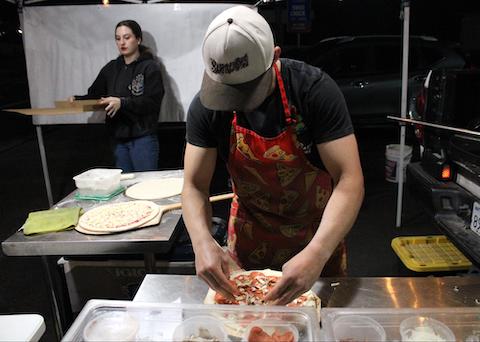 Before the lights were even on one recent evening, customers started lining up in the parking lot. All walks of life ordered many different pizza topping combinations, and the oven sitting in the bed of the truck was never empty.
